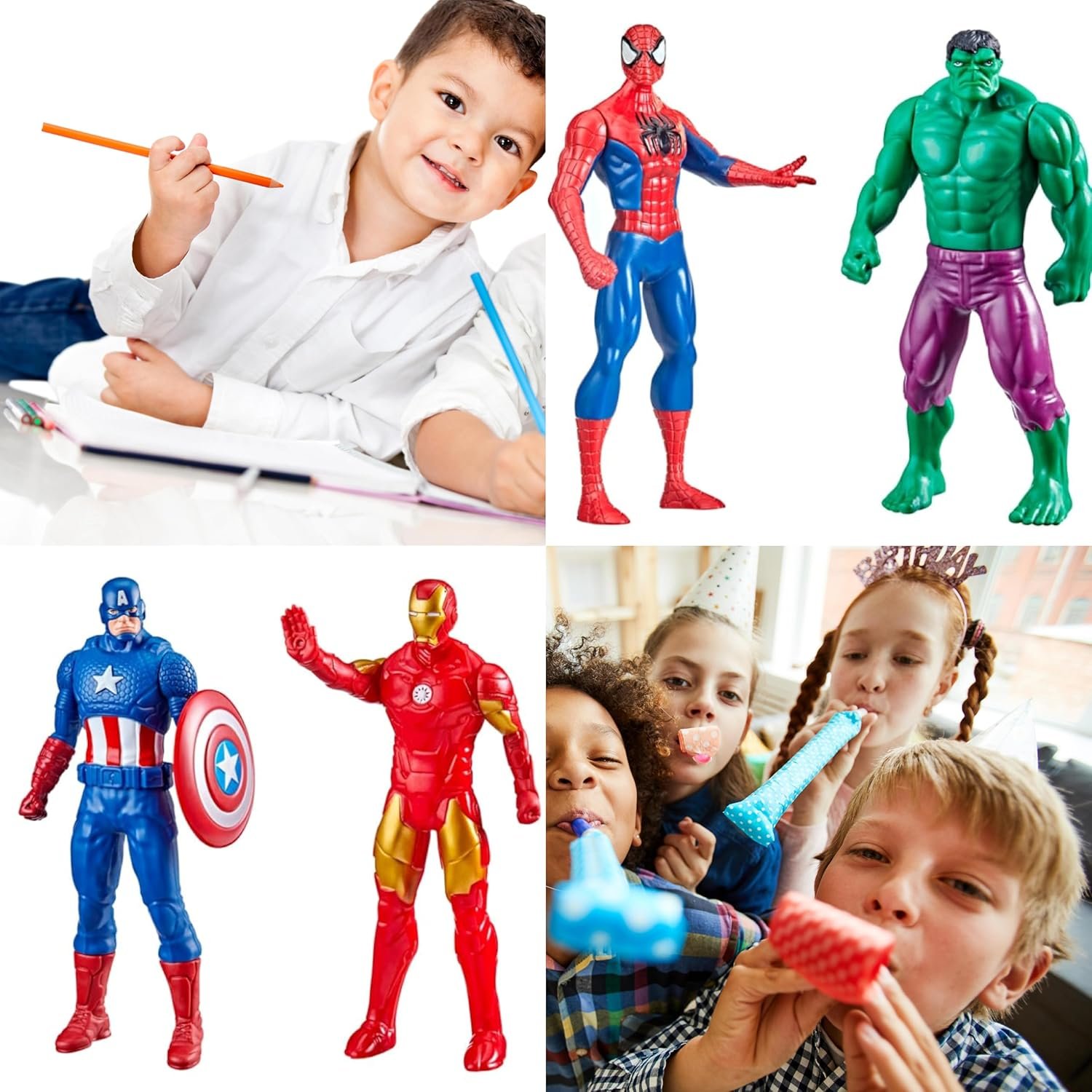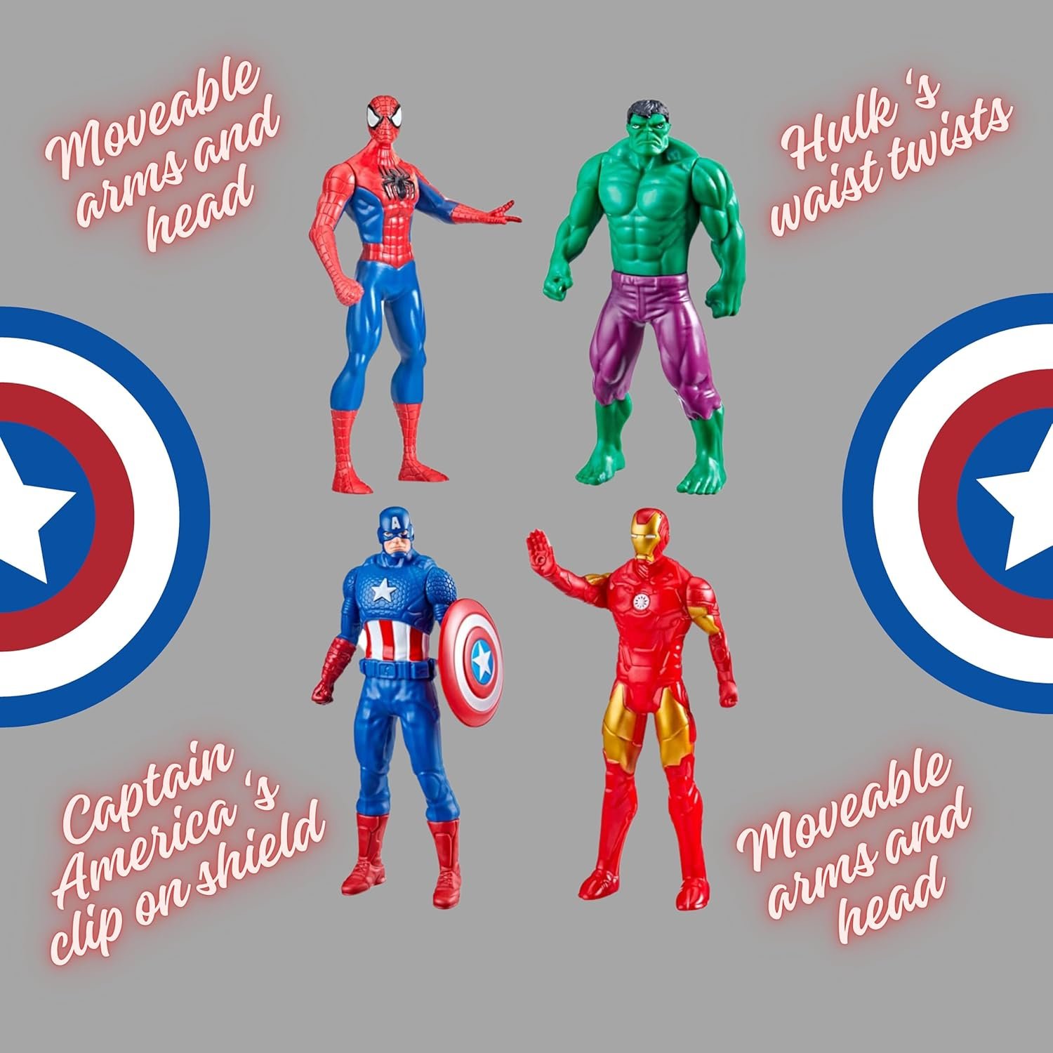 - 4 Iconic Action Figures – Includes Spider-Man, Hulk, Iron Man, and Captain America, each approximately 15 centimetres tall.