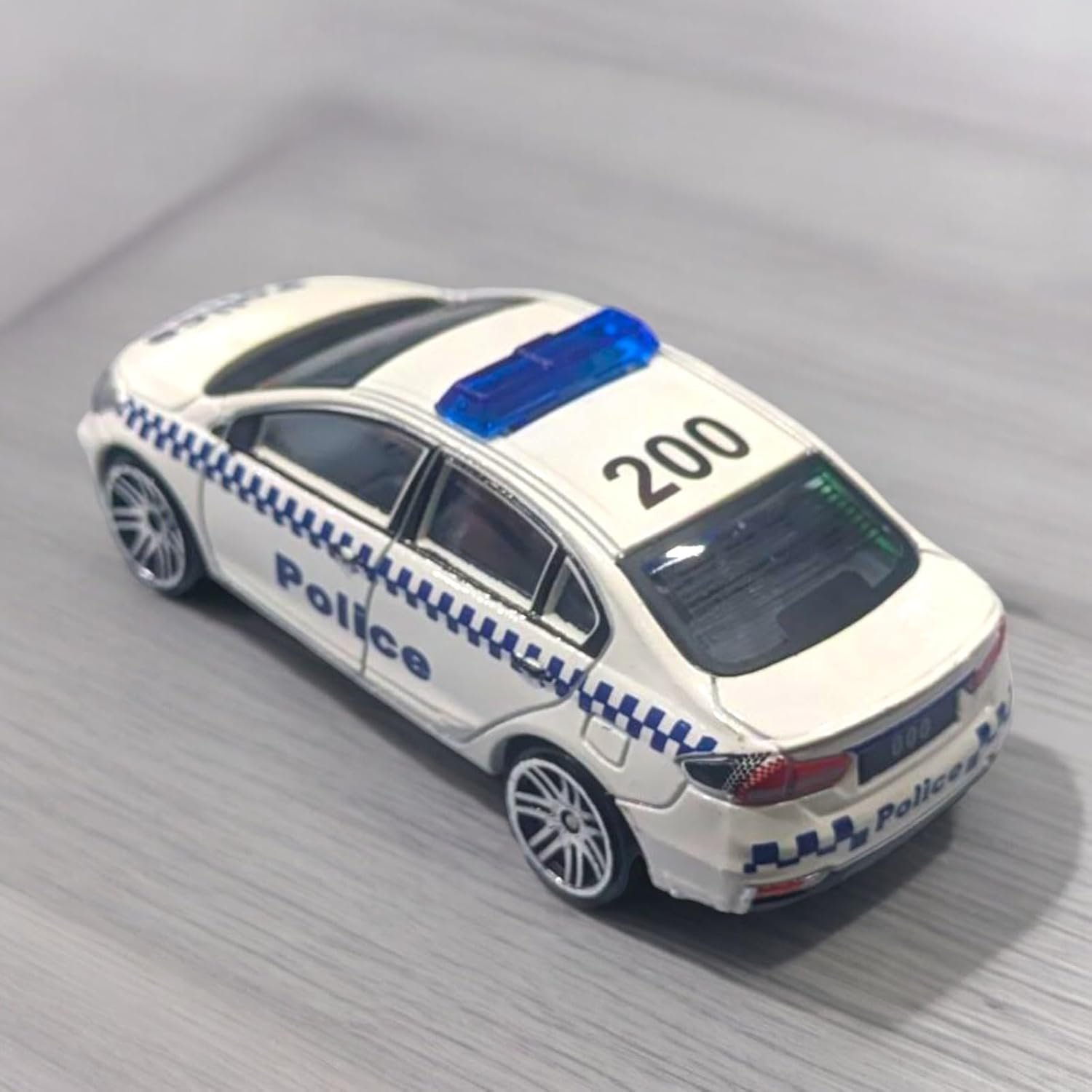 This realistic diecast model features the authentic design of an Australian police car, complete with police decals and a rooftop light bar. Its small size, measuring just 7cm x 3cm x 3cm, makes it easy to handle and ideal for both play and display. The car is also designed to be part of a larger collection, with each pack offering a unique, vibrant color (note: this specific model is white, but the product line features random colors).
