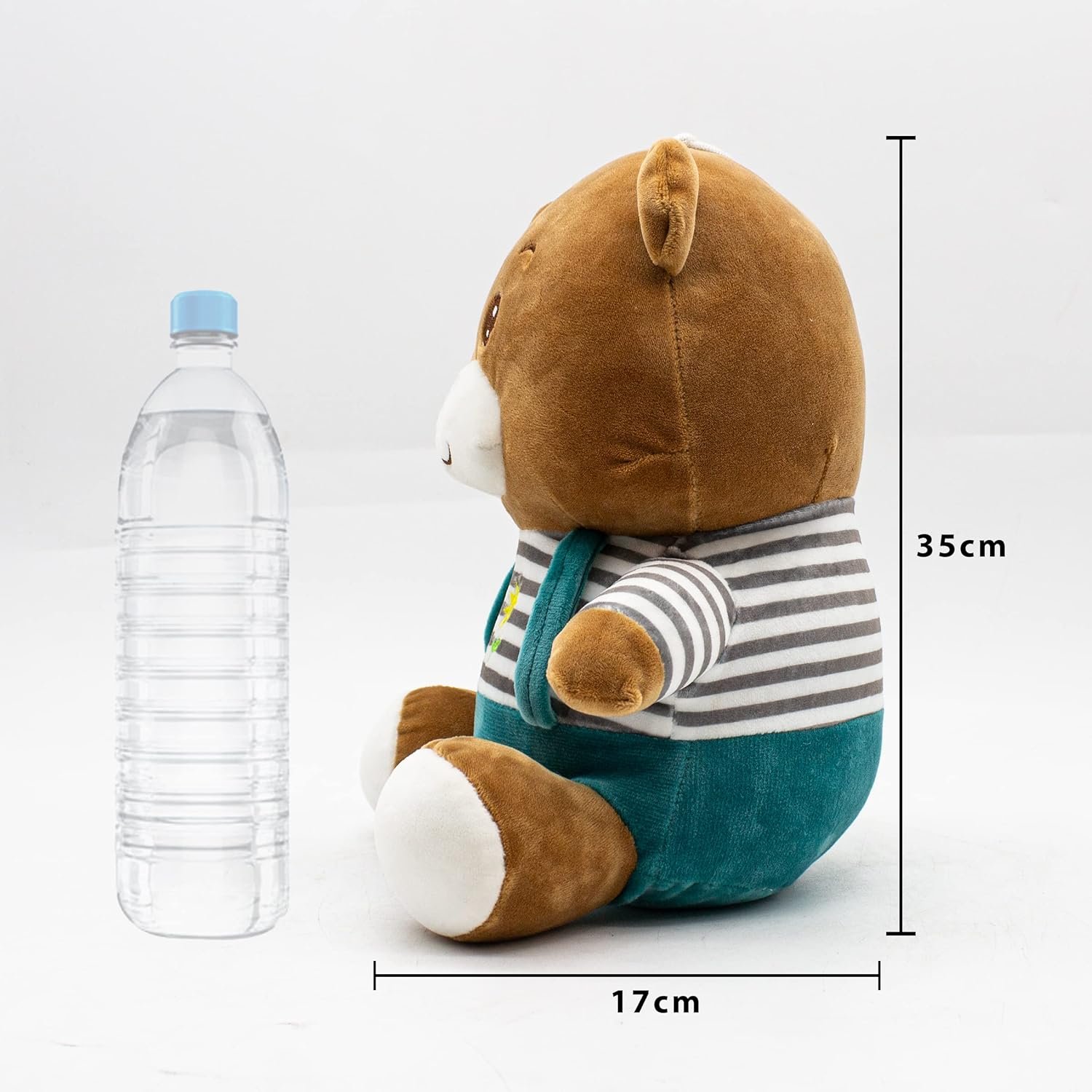 Wonderful Sweet Bear Soft Toy, a delightful plush toy crafted with ultra-soft fabric for endless hugs. This charming bear wears a cute outfit of striped shirt and mint green overalls. Made with high-quality, non-toxic, and skin-friendly materials, it is lightweight, durable, and easy to clean. It makes a perfect gift for children and collectors on birthdays, holidays, or special occasions.