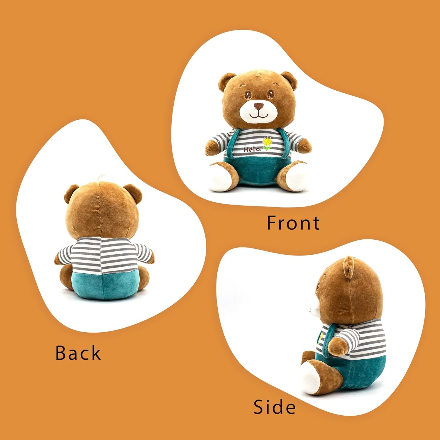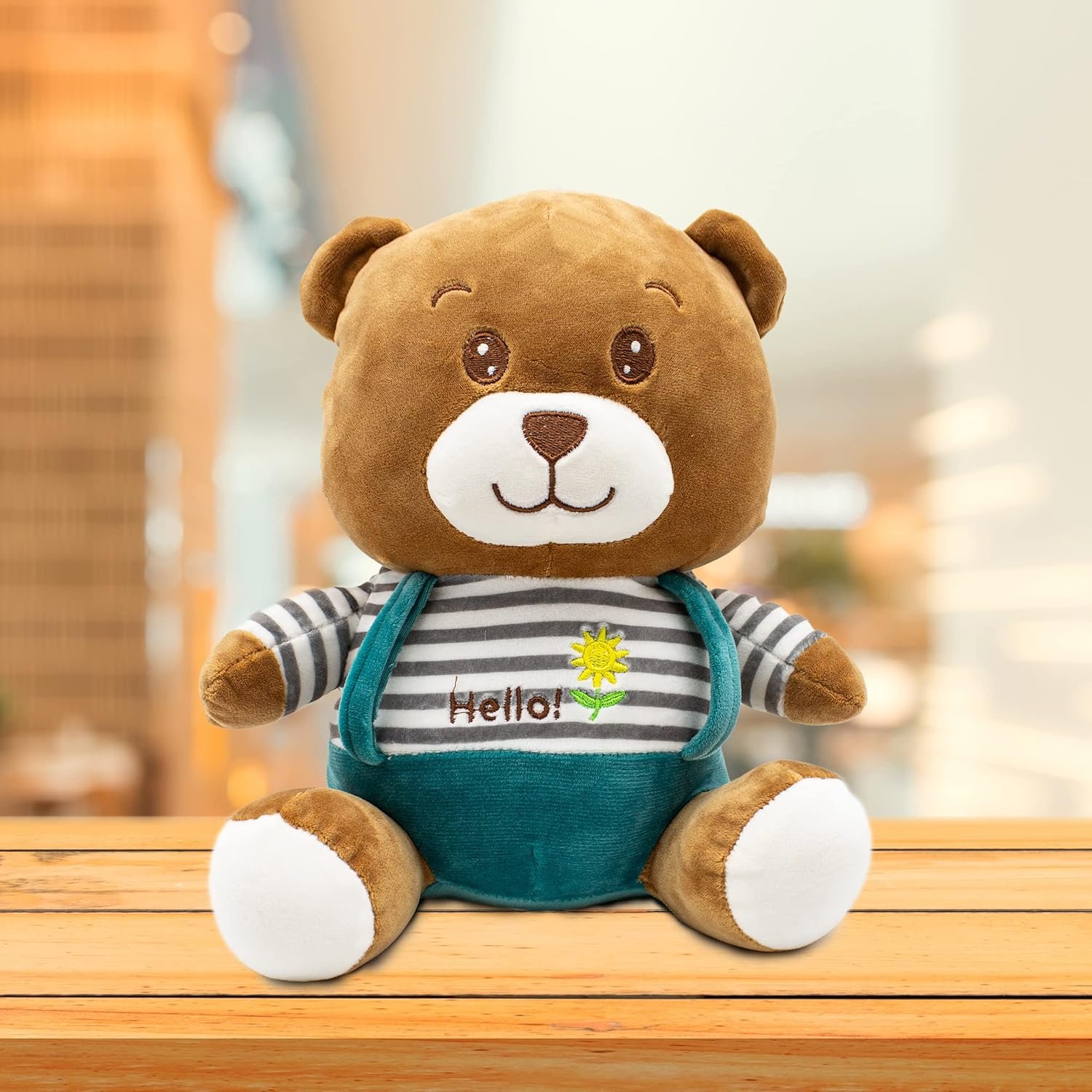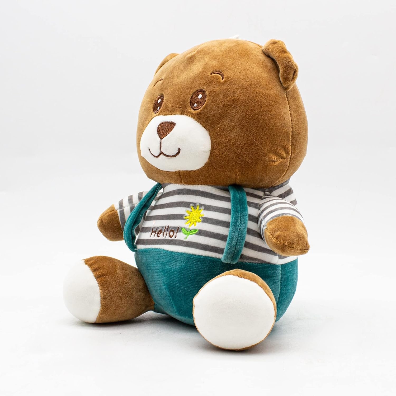 The Sweet Bear Soft Toy is a delightful plush toy designed for endless hugs and smiles! This utterly charming bear is crafted with ultra-soft fabric, offering both comfort and charm for children and fans alike. The adorable teddy wears a cute striped shirt with mint green overalls, featuring a sweet “Hello!” embroidered flower detail. Made with high-quality, non-toxic, and skin-friendly materials, this plush toy is safe, lightweight, durable, and easy to clean. It’s an ideal companion for kids, collectors, and soft toy lovers and is perfect for gifting on birthdays, holidays, or special occasions.